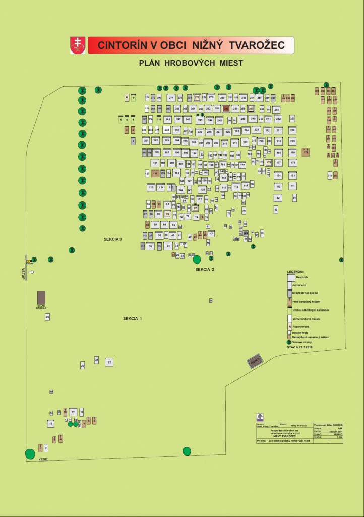 V priložených súboroch sa nachádza grafický plán pohrebiska a evidencia pohrebiska po sekciach.
